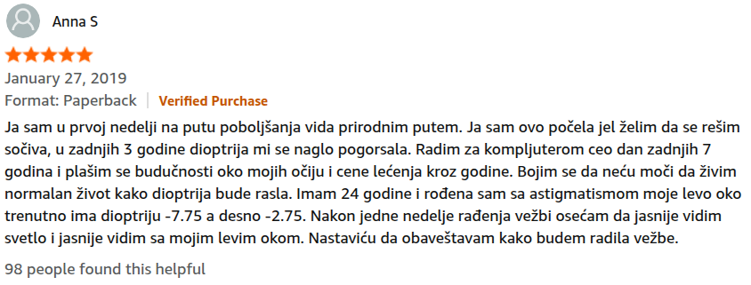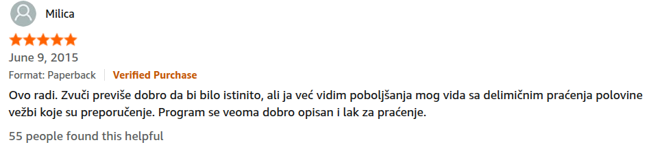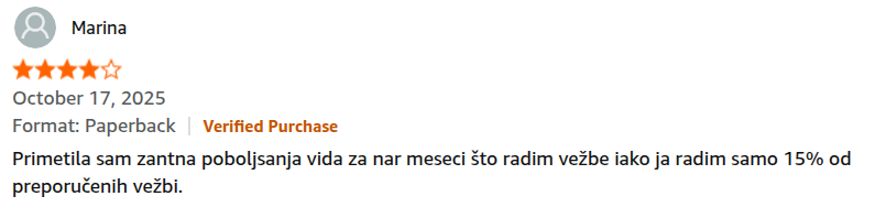 I to sve uz pomoć vežbi za vid, pa ćak iako ne radim redovno imam dobre rezultate...
