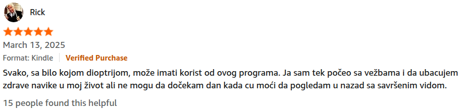 Baš zato sam napravio program prirodnog skidanja dioptrije sa novim vežbama dr Meira koje on uči na njegovom plaćenom programu i sa njim ćete moči da skinete dioptriju bez operacije sa 30 minuta dnevno za 90 dana ili manje čak iako imate minus dioptriju.